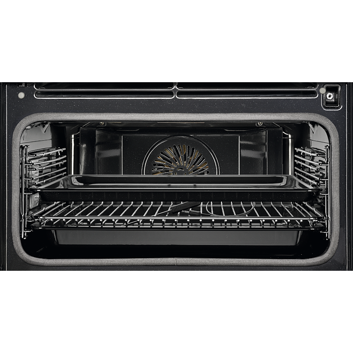 Некоторые модели электрических духовых шкафов оснащены кольцевым электронагревателем. Он установлен на задней стенке рабочей камеры. За ним находится вентилятор, который заставляет жар активно циркулировать внутри и равномерно распределяться на каждом уровне. Поэтому данный режим нагрева идеален для приготовления нескольких блюд одновременно.