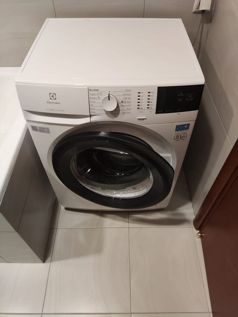 Из минусов отмечу, что при максимальной загрузке в 8 кг барабан иногда кажется немного тесноватым — особенно если стираешь объёмные вещи вроде одеял или курток. Однако это не критично и скорее вопрос привычки правильно распределять бельё. Также стоит сказать, что класс отжима — B, а не A, как у некоторых премиальных моделей, поэтому после стирки вещи могут оставаться чуть более влажными, чем хотелось бы. Но для повседневного использования это не создаёт проблем — главное, не забывать выбирать дополнительное полоскание, если кто-то в доме чувствителен к остаткам порошка.