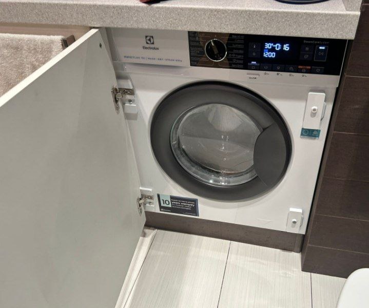 Единственное, что иногда вызывает лёгкое неудобство — это отсутствие автоматической регулировки уровня влажности при сушке. Приходится самостоятельно выбирать нужную программу в зависимости от типа ткани, и если ошибиться, вещи могут оказаться либо недостаточно сухими, либо чрезмерно пересушенными. Также отмечу, что при интенсивном отжиме (программа «Отжим / Слив») машина всё же издаёт немного больше шума, чем ожидалось — хотя это не критично, особенно учитывая, что техника встроенная и шум частично гасится фасадом. В остальном претензий нет: управление интуитивное, все программы работают стабильно.