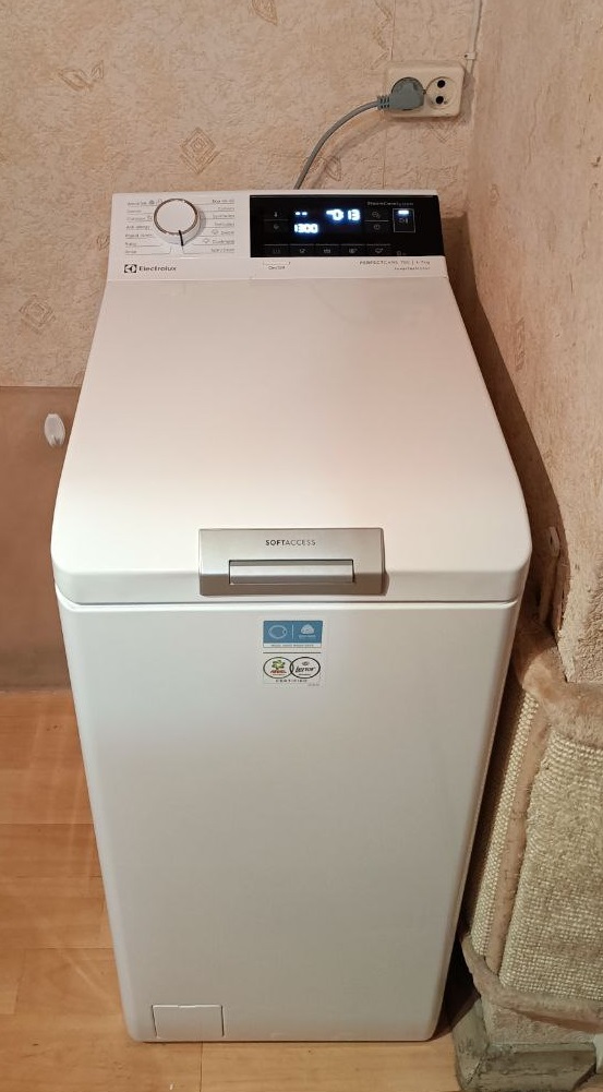 В целом, Electrolux EW7TN3372 — это надёжная, практичная и продуманная техника, которая отлично вписалась в наше пространство и полностью оправдала ожидания. Несмотря на то, что по новой шкале энергоэффективности она имеет класс D, на деле расход воды и электричества ощущается вполне разумным — счета за коммуналку не «взлетели». Машина проста в управлении, не требует сложного ухода и справляется со всеми типами тканей. Особенно ценю, что можно запустить стирку даже с половинной загрузкой — это экономит и ресурсы, и время. Если вы ищете компактную, но мощную стиральную машину с вертикальной загрузкой для городской квартиры — смело рекомендую эту модель. За свою цену она предлагает отличное соотношение функциональности, качества сборки и удобства использования.